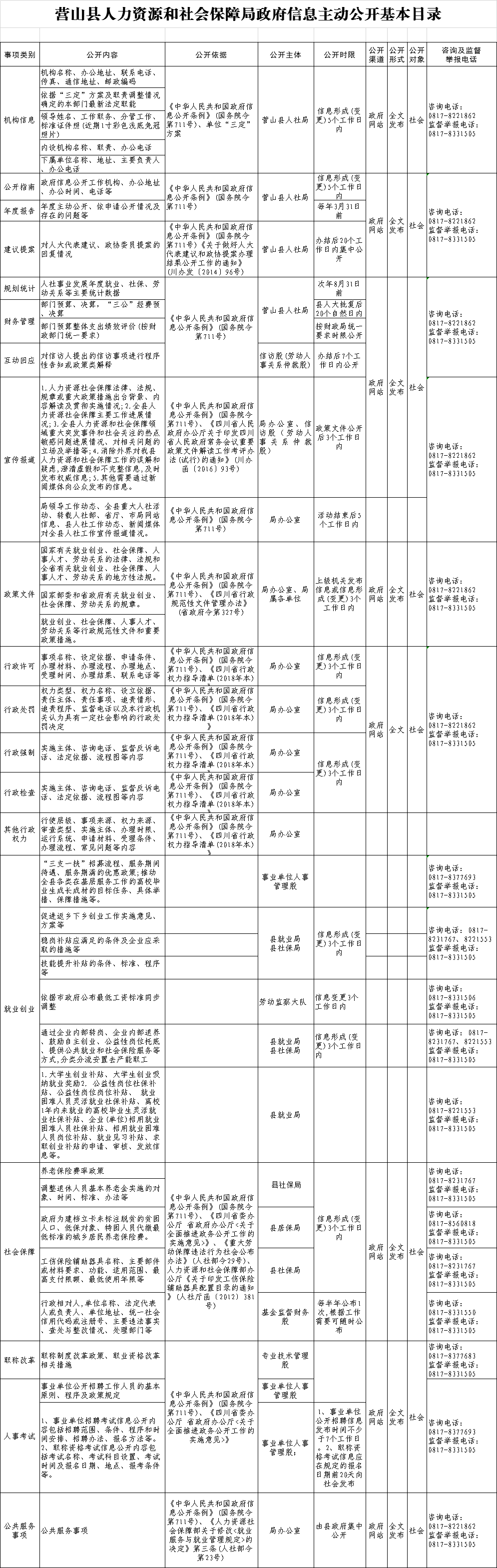 营山县人力资源和社会保障局政府信息主动公开基本目录