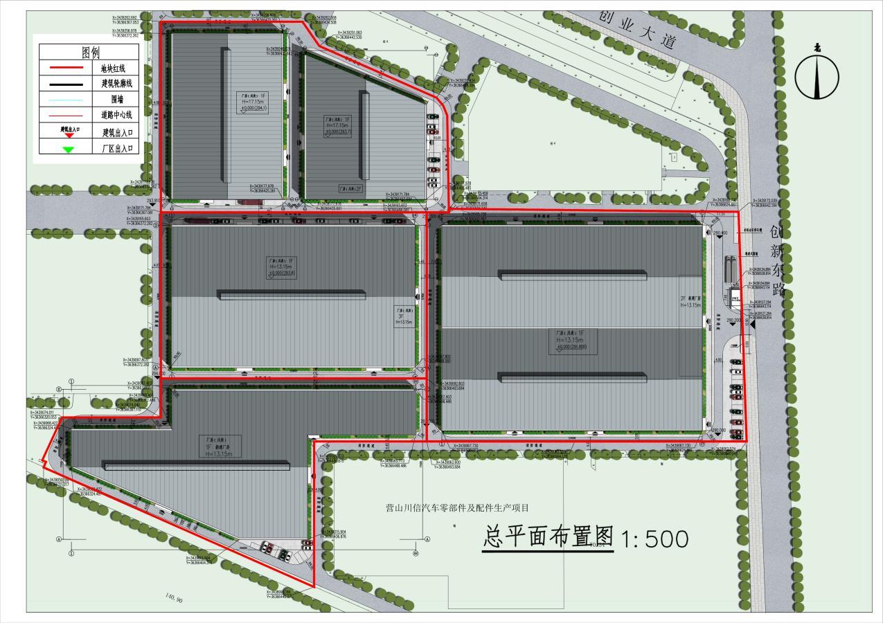 四川瑞祥机械零部件制造有限公司锻造机加工生产项目位于经开区创业大道南侧,创新东路西侧,创业南路北侧。总用地面积9622.25平方米(约14.43亩)。该地块规划设计条件为:容积率≥1.3,建筑密度≥45%,绿地率≤20%。